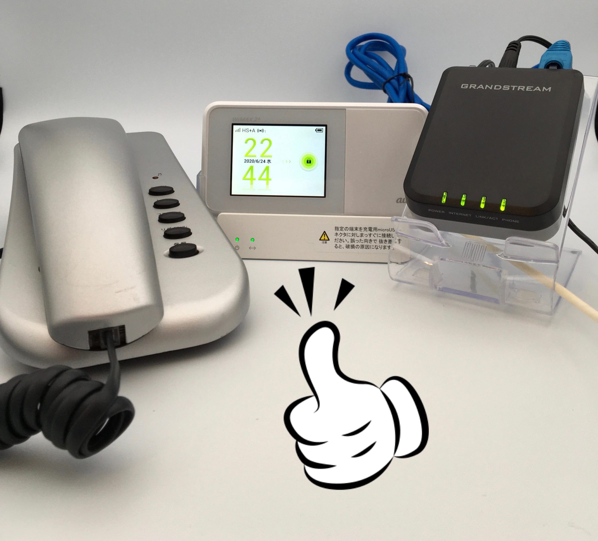 固定電話を維持しようとした場合、ひかり電話でも基本料とナンバーディスプレイ代で、月々1500円程度はかかると思います。年間に換算すると2万円程度。チリも積もれば山となるで、この維持費を削ろうと、ブラステルで取得した050番号をGrandstreamのVoIP adapterであるHT701(又はHT702)を使って固定電話機で運用することにしました。